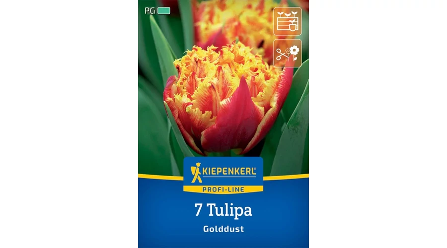 A rojtos tulipán 'Golddust' májusban hoz pompás, piros, sárga szegélyű virágokat, amelyek tűzijátékra emlékeztetnek. Ezek a gyönyörű virágok májusban nyílnak, és körülbelül 35 cm magas szárakon állnak. Ezzel a magassággal a 'Golddust' nemcsak ágyásban, hanem dézsában, ládában vagy cserepekben is termeszthető.