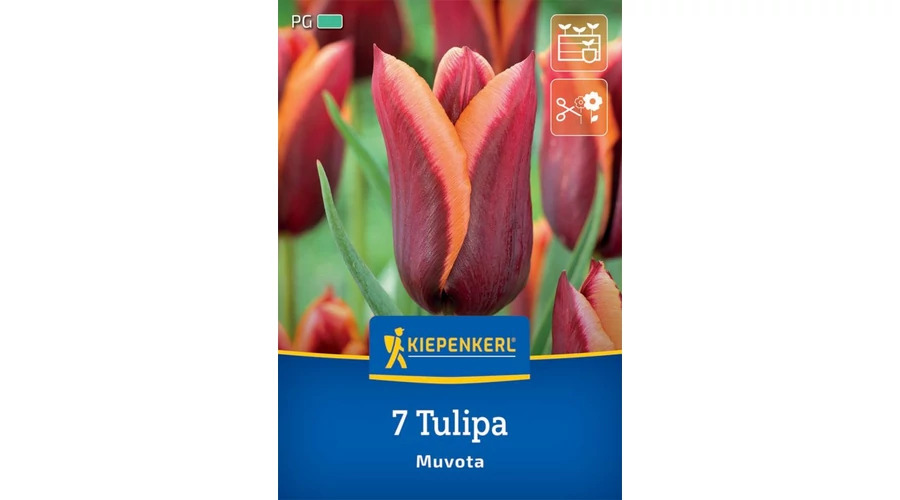 A sokszínű Triumph tulipánok egyike, a 'Muvota' fajta csodálatos színkombinációban virágzik. Áprilisban jelennek meg a lilás-ibolyaszínű virágok, jellegzetes rózsaszín és narancssárga szegéllyel. Ez a tulipán nemcsak a kertben, hanem igény szerint dézsákban, ládákban és magaságyásokban is árasztja meleg hangulatát. Termesztéskor kérjük, vegye figyelembe, hogy a 'Muvota' napos vagy félárnyékos helyet igényel. Az élénk színű virágok vázában is csodálatosan vonzzák a tekintetet.
