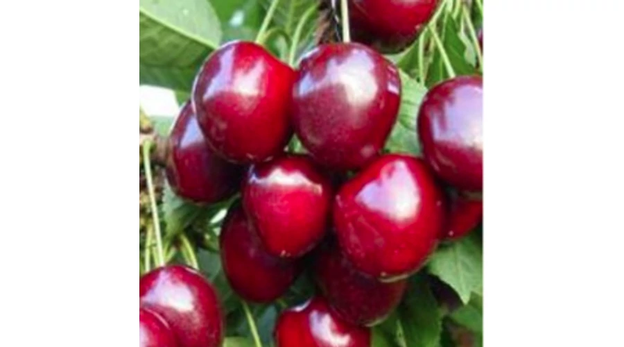 Gyümölcse: Nagy méretű, 6-8 gramm tömegű, 23-25 mm átmérőjű, szív alakú. Kocsánya vékony és középhosszú. Héja fényes sötétbordó, majdnem feketébe hajló színű. Húsa ropogós, bordópiros színű, kemény, zamatosan édes, rendkívül finom. Repedésre nem hajlamos